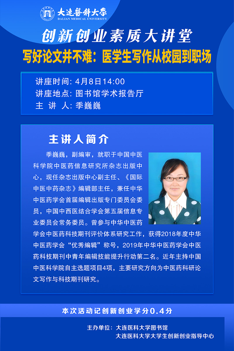 创新创业综合素质大讲堂--写好论文并不难:医学生写作从校园到职场