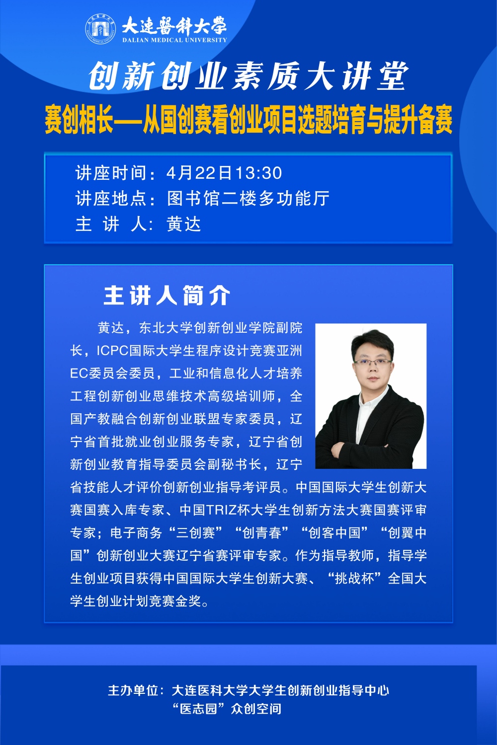 创新创业素质大讲堂:赛创相长--从国创赛看创业项目选题培育与提升备赛