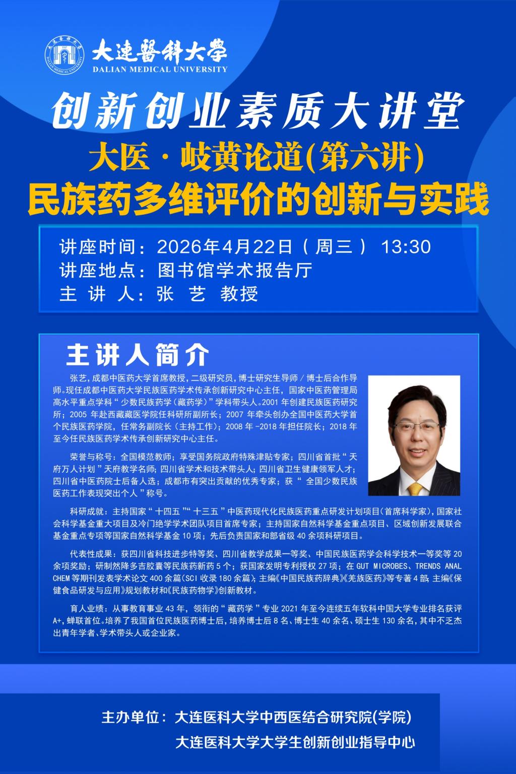 创新创业素质大讲堂:大医·岐黄论道(第六讲)--民族药多维评价的创新与实践